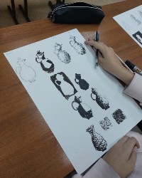 Преподаватель Оксана Витальевна Чернышева рассказала о том, какие выразительные средства использует графика: линию, точку, пятно, штрих. Ребята понаблюдали, как графической палитрой пользуются мастера: Матисс, Пикассо, Митурич, Кокорин, Чарушин, а также увидели оригинальные приемы современных художников.