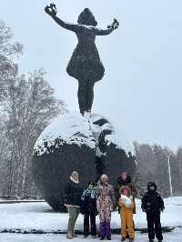 Экскурсию к скульптуре "Моя Сибирь" посетили юные музыканты из Кольцовской детской школы искусств в сопровождении родителей и преподавателей Оксаны Юрьевны Малютиной и Тихона Александровича Тананыкина.