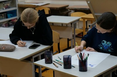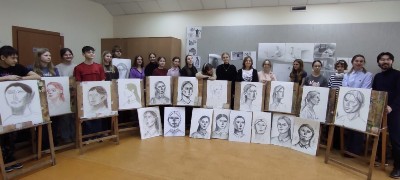 Живописец, график, монументалист, член Союза художников России Нурлан Абдикасымович Тайиров мастерски пишет живые эмоциональные портреты. Художник объяснил основы построения головы, виртуозно нарисовал портрет модели, а затем наши ребята под контролем Нурлана Абдикасымовича рисовали женский портрет сангиной и углем. По итогам провели просмотр и обсуждение. Мастер отметил узнаваемость, эмоциональность, оригинальность выполненных работ и заметил, что художник ценится за уникальность.