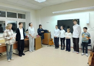 Глеб Александров, принявший участие в мастер-классе, сам выбрал песню для подбора – "День победы" композитора Давида Тухманова на слова Владимира Харитонова. Мелодию Глеб подобрал на инструменте по слуху, а Елена Николаевна рассказала о принципе подбора аккордов к мелодии, тех трех заветных аккордов, которые помогают раскрасить любую песню. А чтобы удобно было петь, транспонировали музыкальное произведение в удобную тональность.