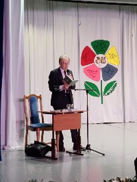 В рамках творческого проекта патриотической направленности "Звуки наукограда", автором которого является преподаватель Оксана Юрьевна Малютина, состоялась творческая встреча с членом Союза писателей России, членом Международной ассоциации поэтов и публицистов, главой наукограда Кольцово Николаем Григорьевичем Красниковым.