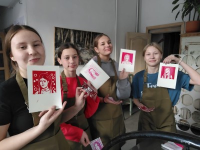 Учащиеся выпускного класса посетили экскурсию в студию печатной графики "Fab.8" в городе Новосибирске. Для ребят мастер-класс по линогравюре провела художник-график, театральный художник Мария Николаевна Гнучевская. Линогравюра – вид гравюры, для создания которой изображение режется на линолеуме и отпечатывается на листе бумаги. Это одна из техник высокой печати и, пожалуй, самая популярная техника ручной печати в мире.